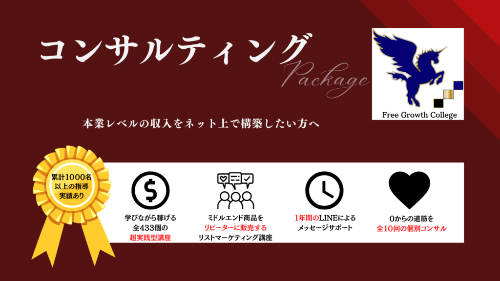 | 対象者 | 副業を始めたい方 | ビジネスを本業レベルにしたい方 | 高利益化・法人化まで進みたい方 |