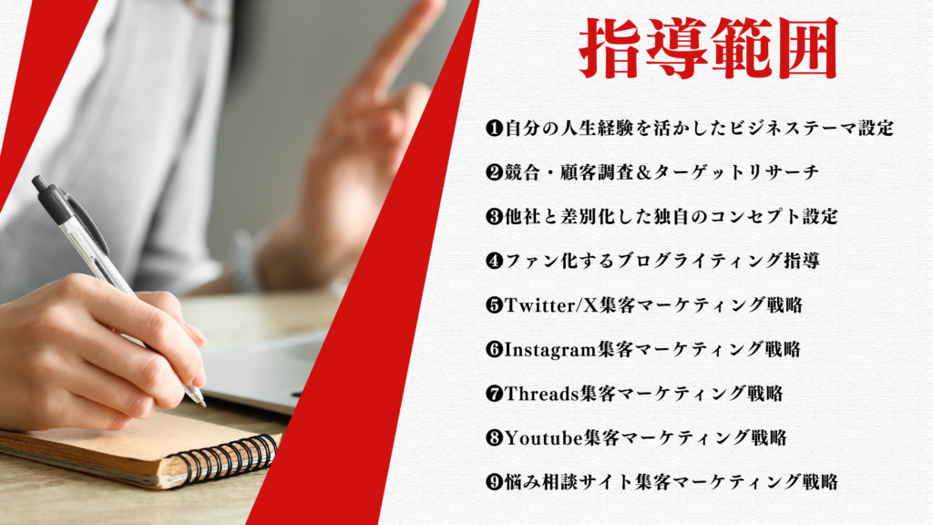 最新のSNSマーケティングは誰でも実践でき、運用1ヶ月目から1000名以上のフォロワーを獲得している人も多い集客戦略を指導していきます。